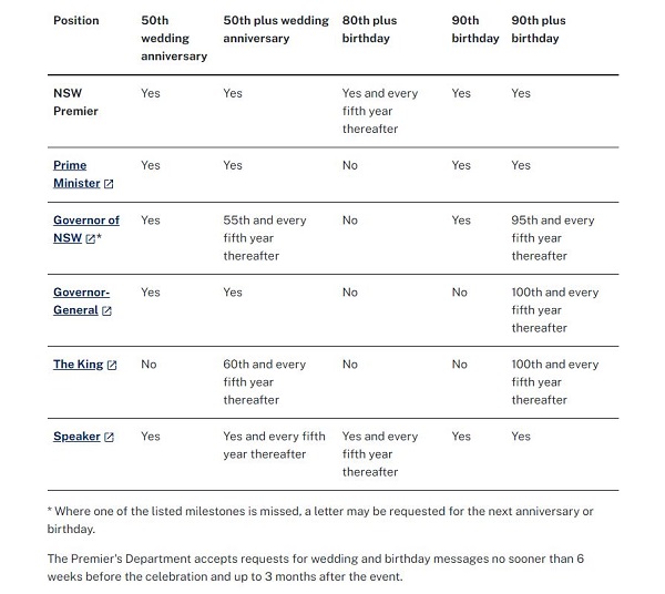 My office is able to arrange congratulatory messages for special birthdays and wedding anniversaries.